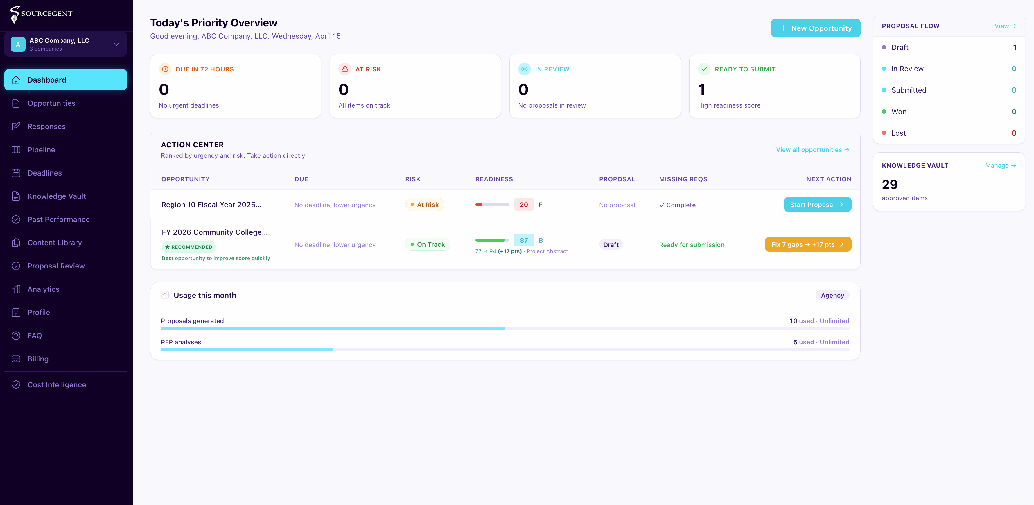 Every product is built on deep knowledge of the problem space. SourceGent was made by people who have written the proposals, won the contracts, and felt every friction point firsthand.